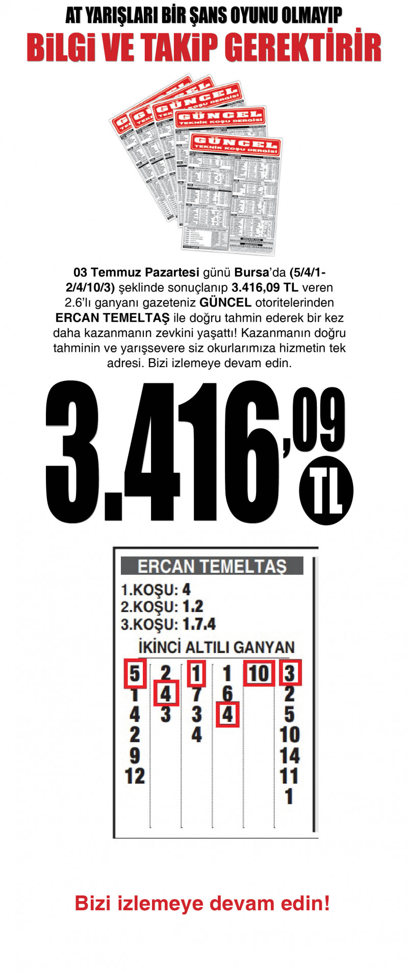 02 Nisan Perşembe günü İzmir’de 3.4.8. ve Antalya’da 1.3.6. Koşuların analizleri yapıldı