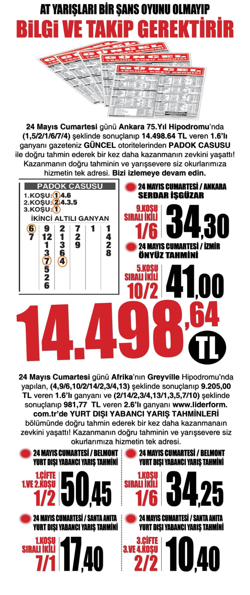 14 Aralık Pazar günü İzmir’de 4.7.9. ve Adana’da 4.5.7. Koşuların analizleri yapıldı