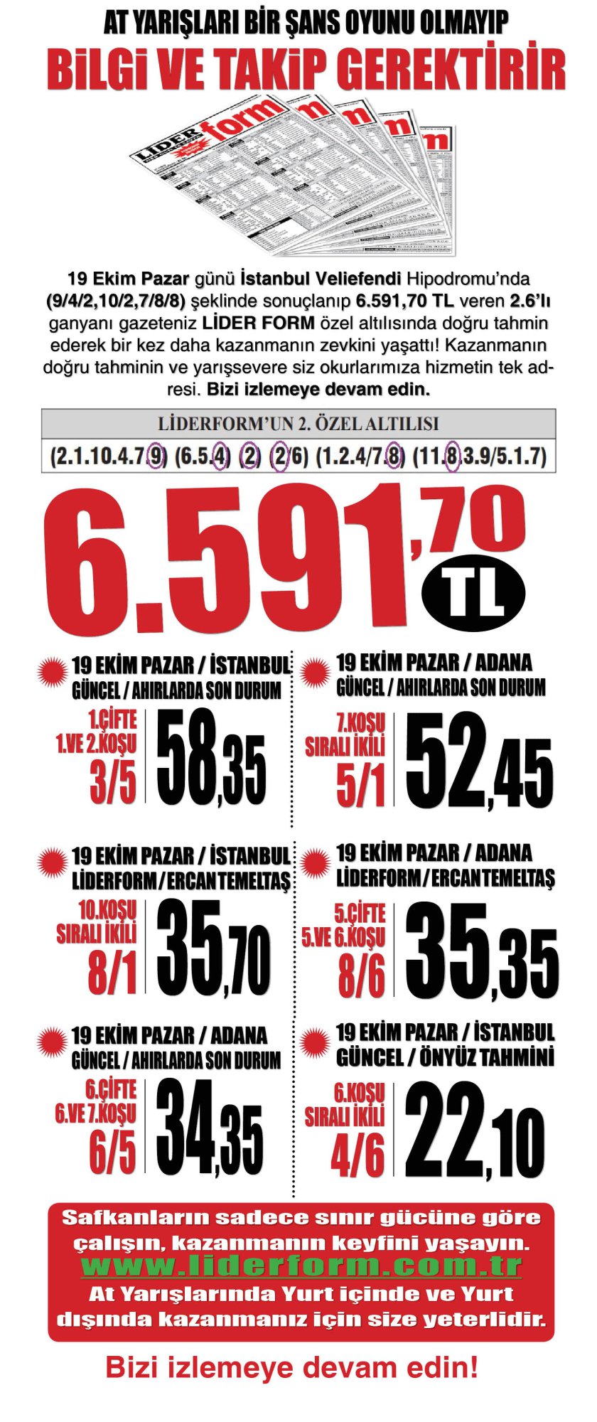 Pazar İstanbul'da 6.591,70 TL'lik 6'lı, 58.35 TL'lik Çifte ve 52.85 TL'lik Sıralı İkili. Sınır sistemi ile kazandırmaya devam ediyoruz