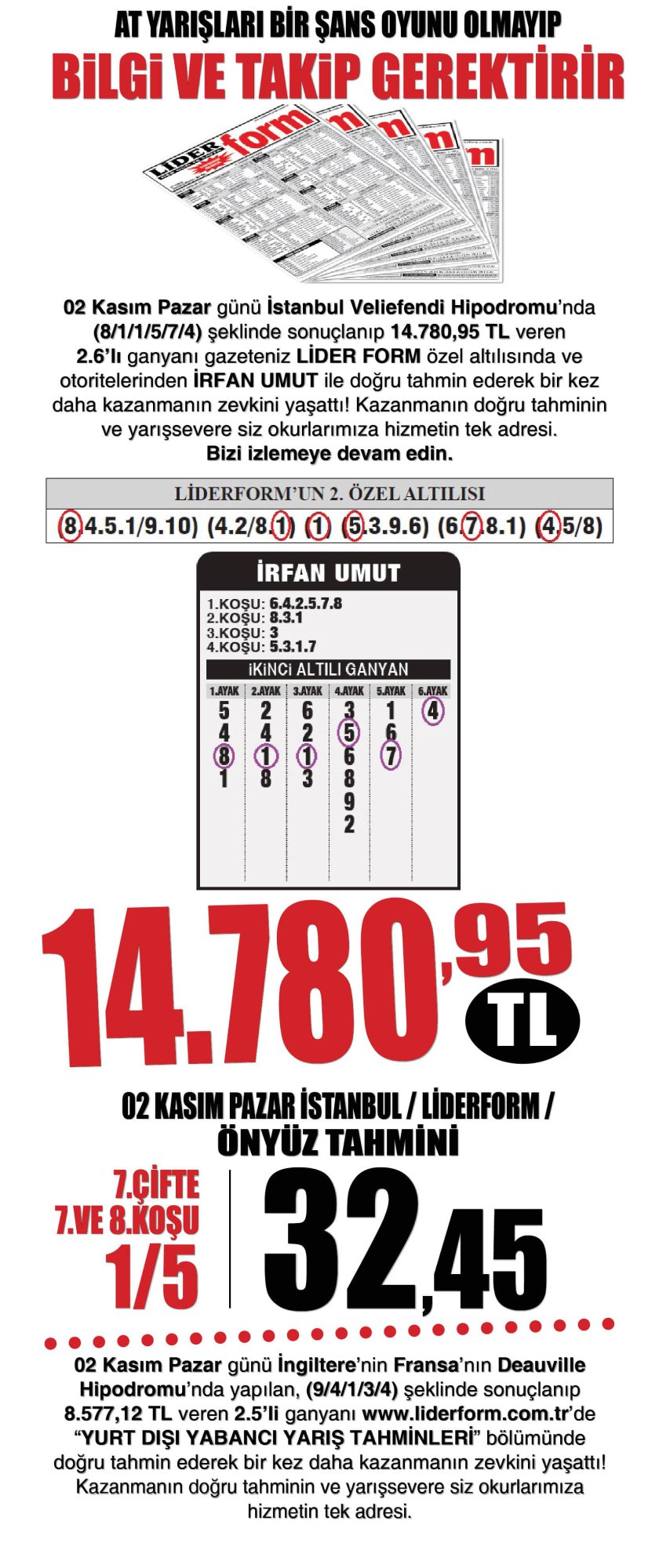 01 Ekim Cumartesi günü ANKARA - İZMİR - DİYARBAKIR'da yapılan yarışlarda bir sonraki koşularında takip edilmesi gereken safkanlar