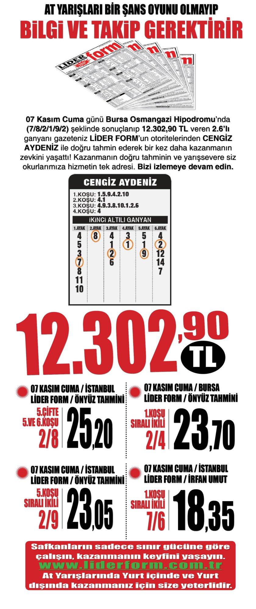 08 Kasım Cumartesi günü Ankara’da 5.7.9. İzmir’de 5.7.9. ve Diyarbakır'da 1.3.5. Koşuların analizleri yapıldı