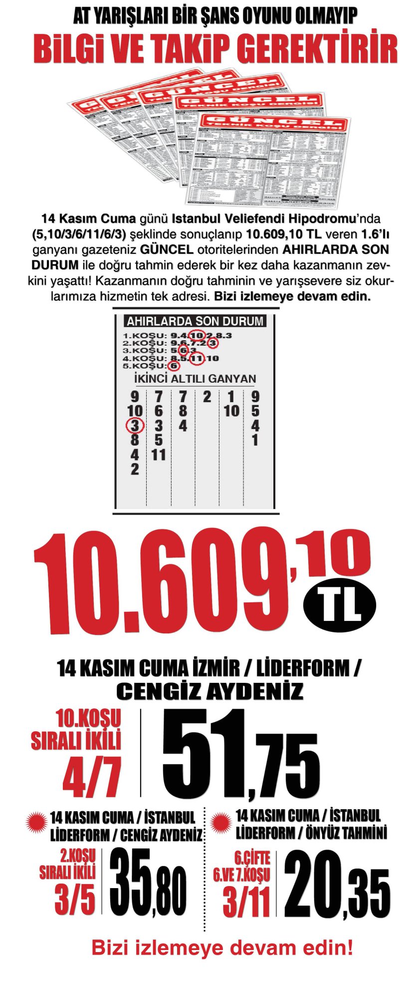 At Yarışlarında Altılı ganyan ve Bahis oyunlarında kazandırmaya devam ediyoruz.