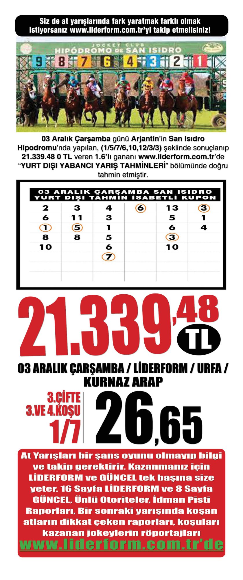Uzman Ekibimizden 21.339,48 TLK'lik Arjantin San Isıdro Altılısı. LİDERFORM'u Takip Edenler Hem Yurt İÇİ hem de Yurt DIŞI Yarışlarında Kazanıyor
