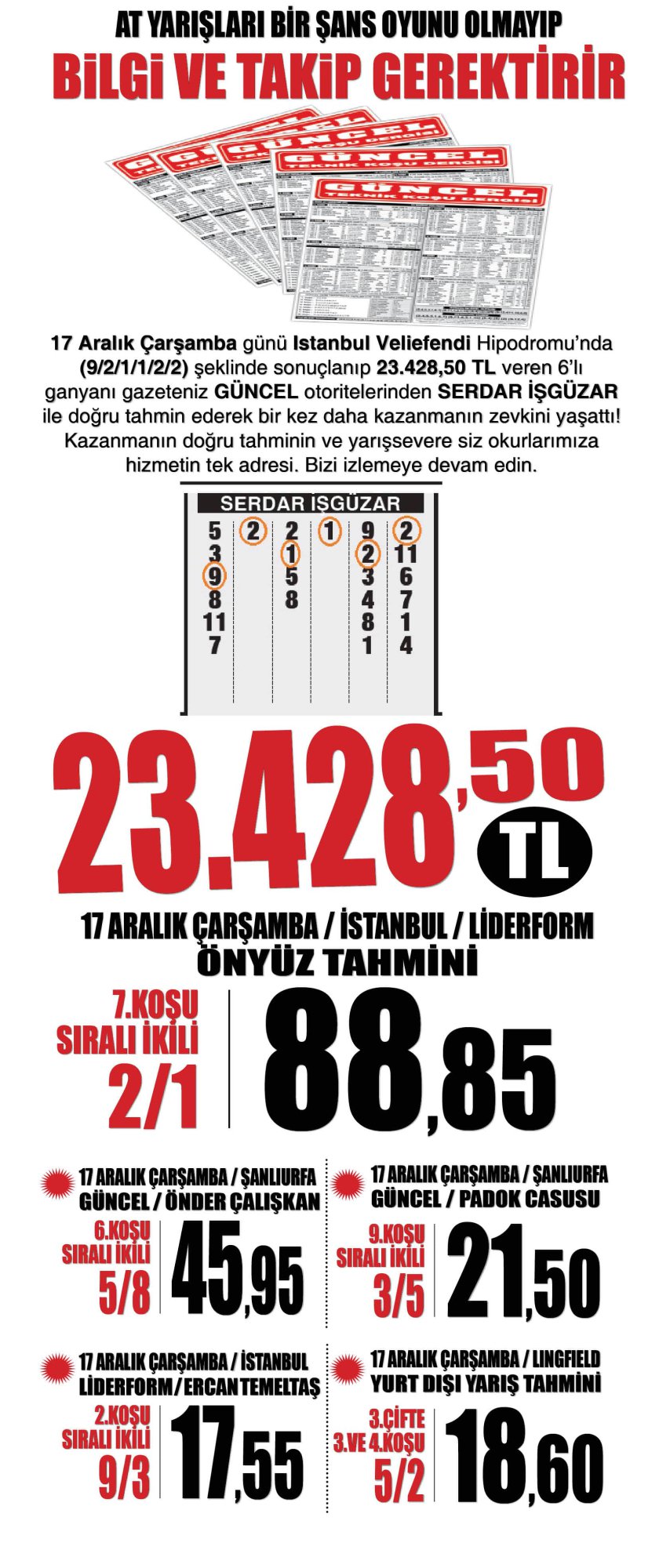 Sınır sistemi ile Güncel'den 23.428.50 TL'lik İstanbul 6'lısını ve LİDERFORM'dan 88.85 TL'lik Sıralı İkili kazandırdık