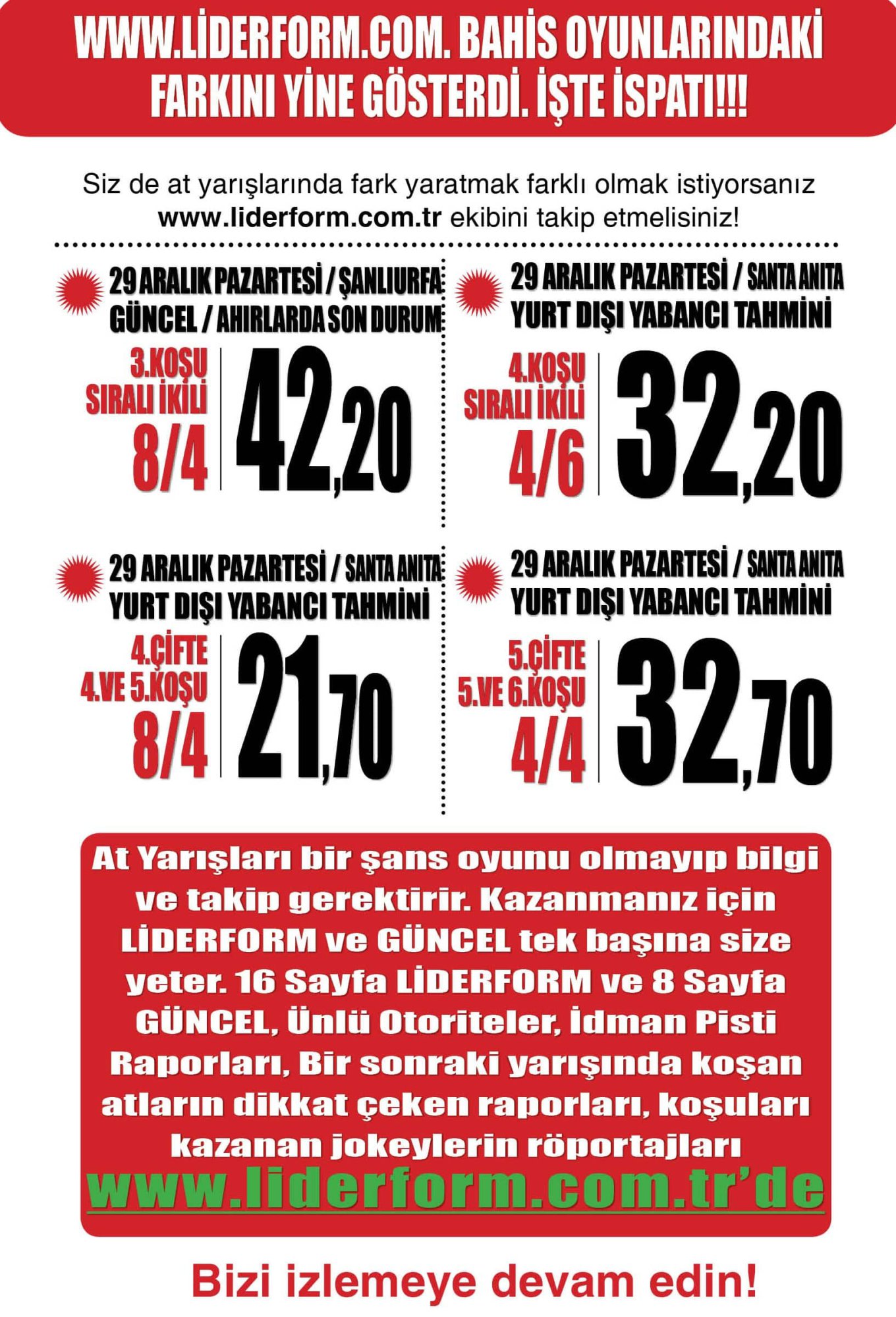 HürkontSanta Anıta Park'ta sürpriz biten son 3 koşuda çifte bahis oyunlarında kazandırmaya devam ettik. Yerli ve Yabancı koşularda 1 numarayız