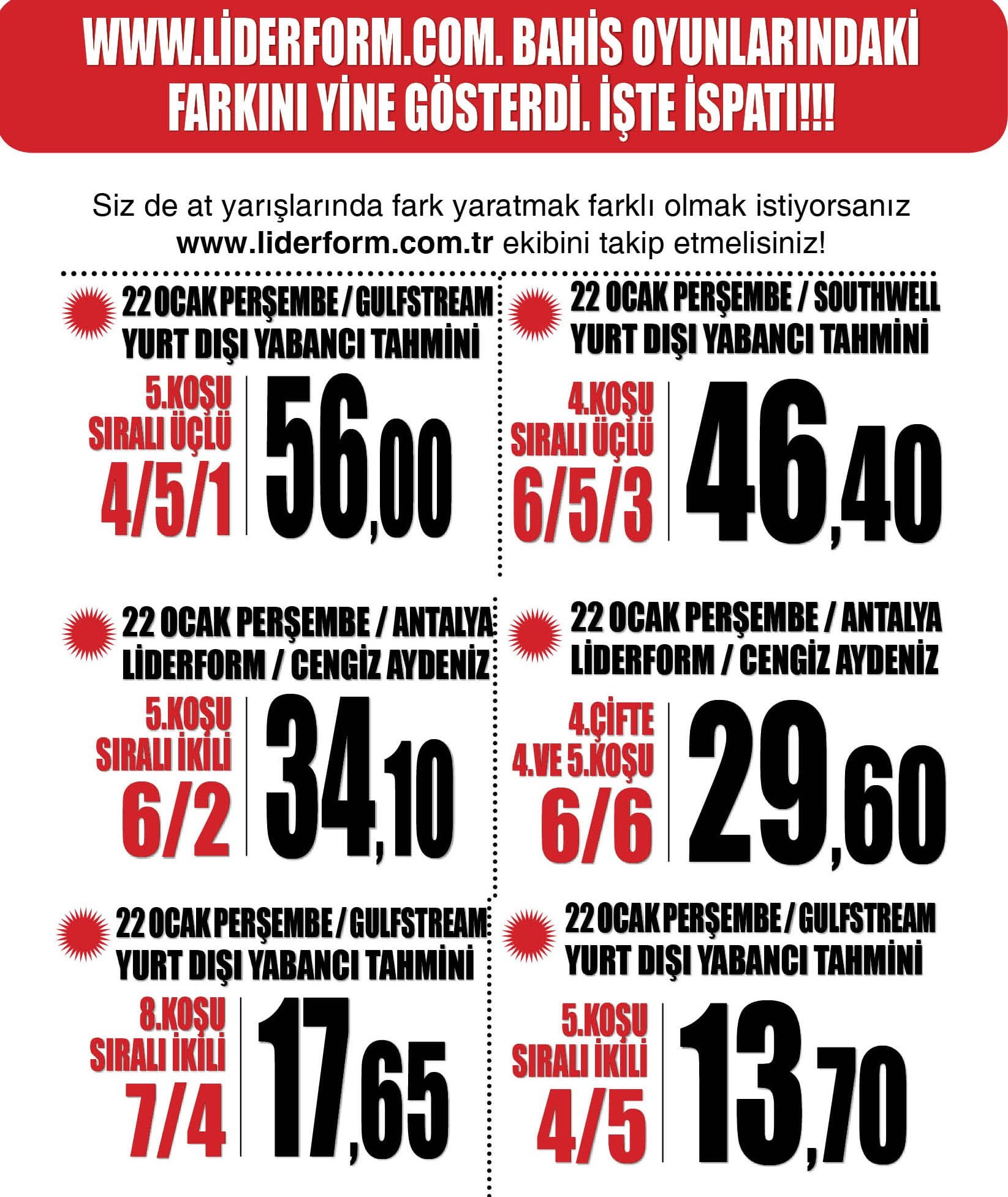 Sitemizin 22 Ocak Perşembe GÜNCEL Yurt Dışı Yabancı Yarış Tahminleri