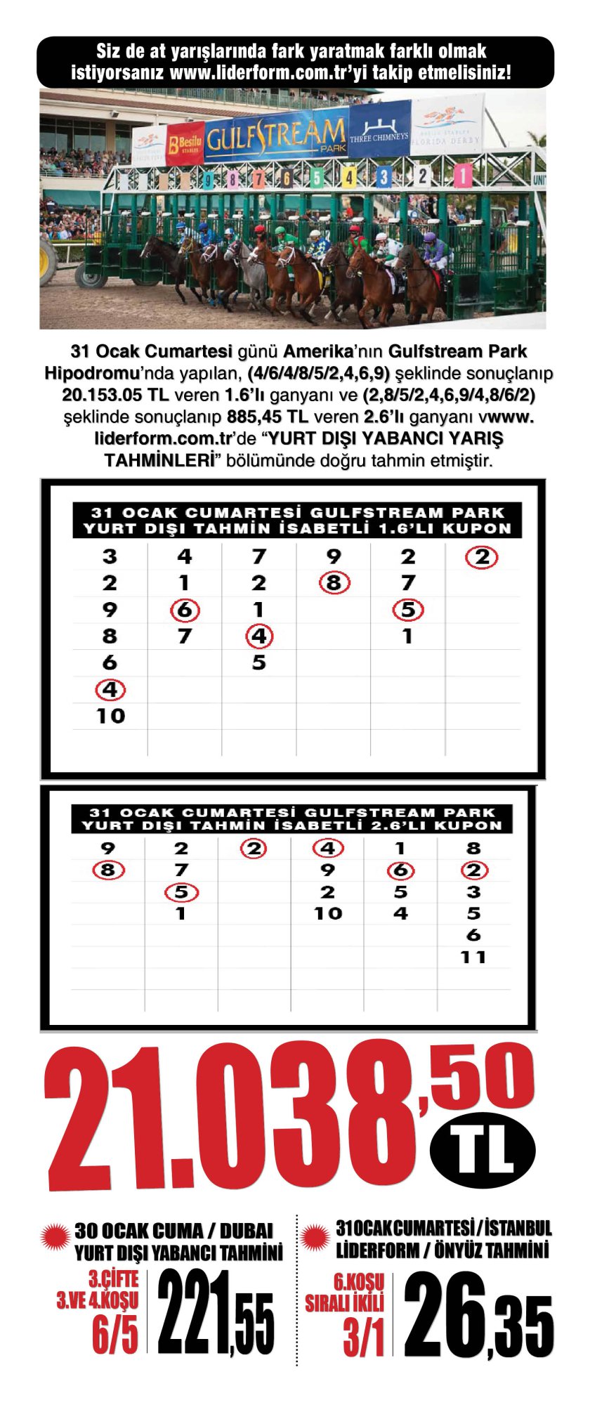 Sitemizin 01 Şubat Pazar GÜNCEL Yurt Dışı Yabancı Yarış Tahminleri