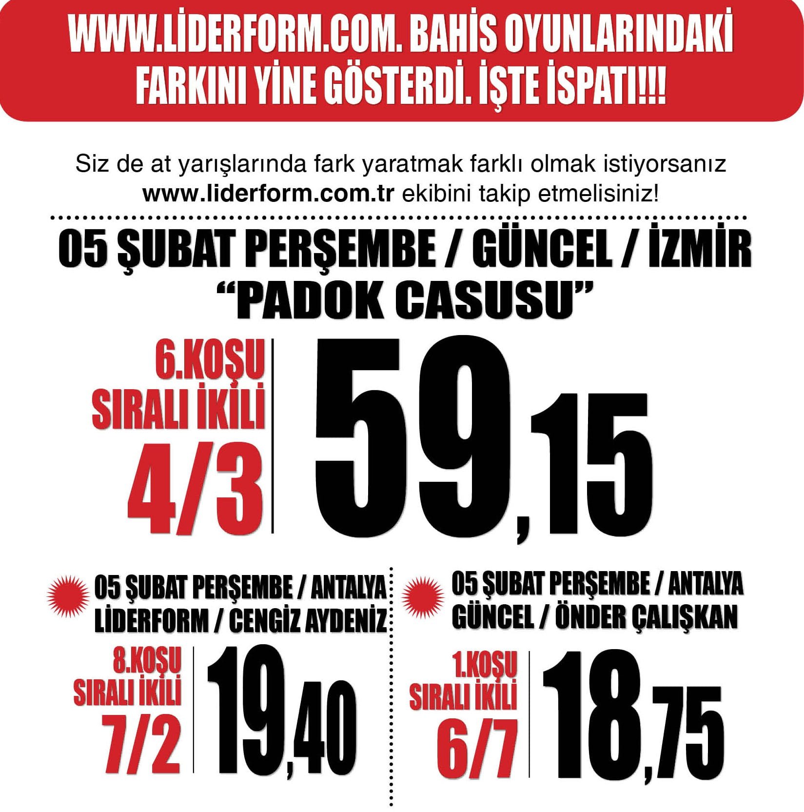 Sıralı İkili Bahis oyunlarında İzmir ve Antalya'da kazandırmaya devam ettik