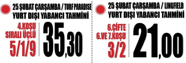 Sitemizin 25 Şubat Çarşamba GÜNCEL Yurt Dışı Yabancı Yarış Tahminleri