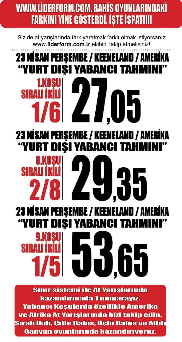YarışlarEkibimizden KEENELAND Yarışlarında Bahis oyunlarında şov yaparak cazip ikililer kazandırdı