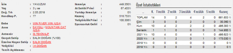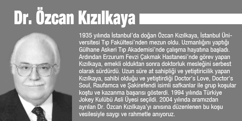 Merhum at sahibi, yetiştirici ve Kulübümüz Asli Üyesi Dr. Özcan Kızılkaya anısına düzenlenen koşu (KV-8/S), 20 Ağustos Cuma akşamı İstanbul Veliefendi Hipodromu’nda yapıldı.